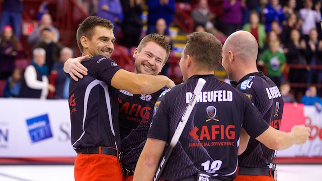 “It was intense,” McEwen admitted. “I didn’t feel normal through the first four ends. I was a little shaky, I wasn’t feeling myself but the boys played so well in front of me that despite me being a little bit off that they hung in there, made a lot of shots in front of me, and I was able to make some big ones for the team at the end.”