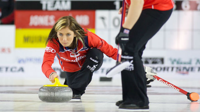 YORKTON, Sask. — Scotland’s Eve Muirhead stole points in four ends to brush aside Winnipeg’s Jennifer Jones 8-2 and qualify for the playoffs at the Pinty’s Grand Slam of Curling Canadian Open Friday.