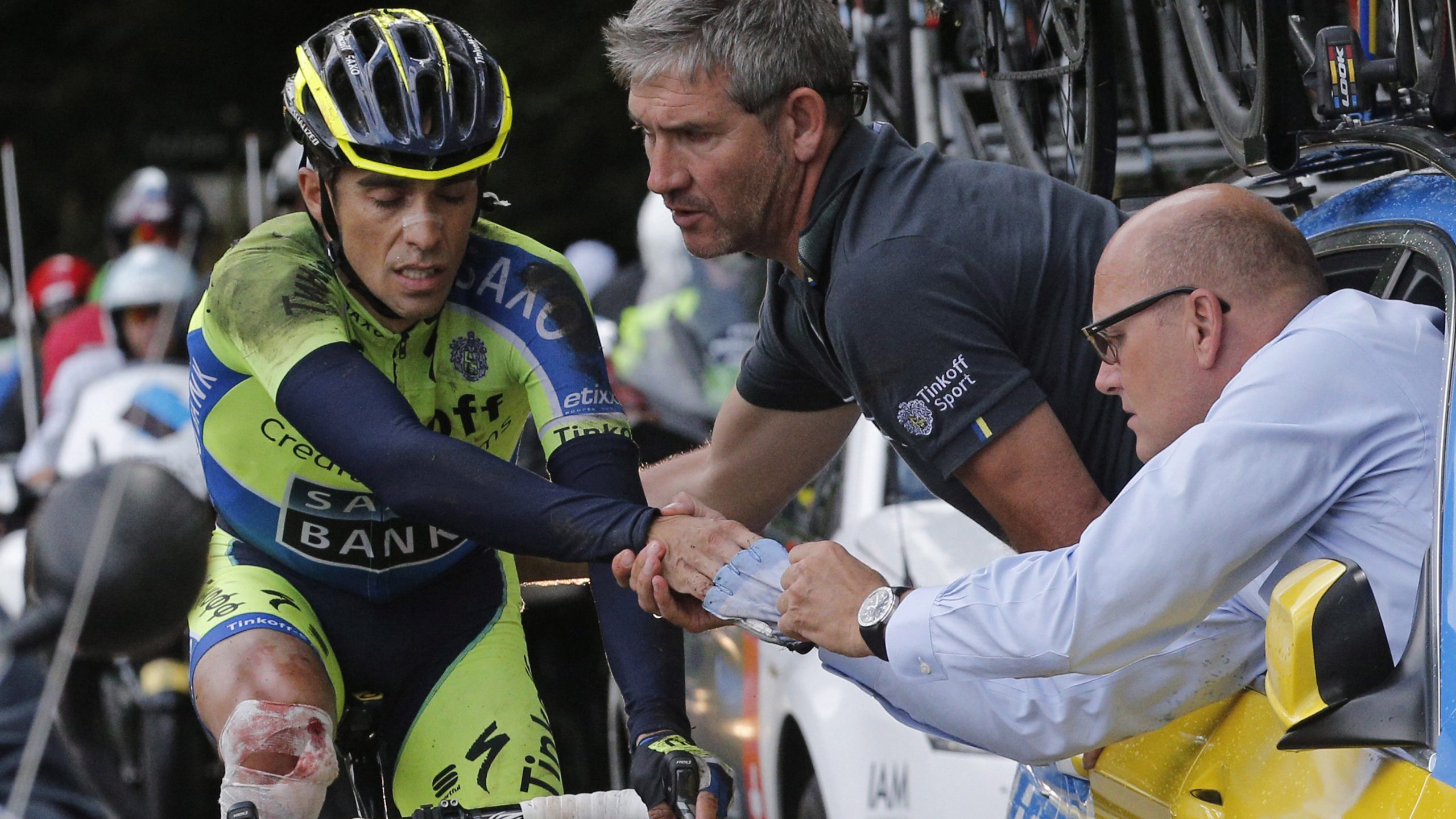 The Colombian managed to get back on his bike and finished the stage over three minutes behind Contador.