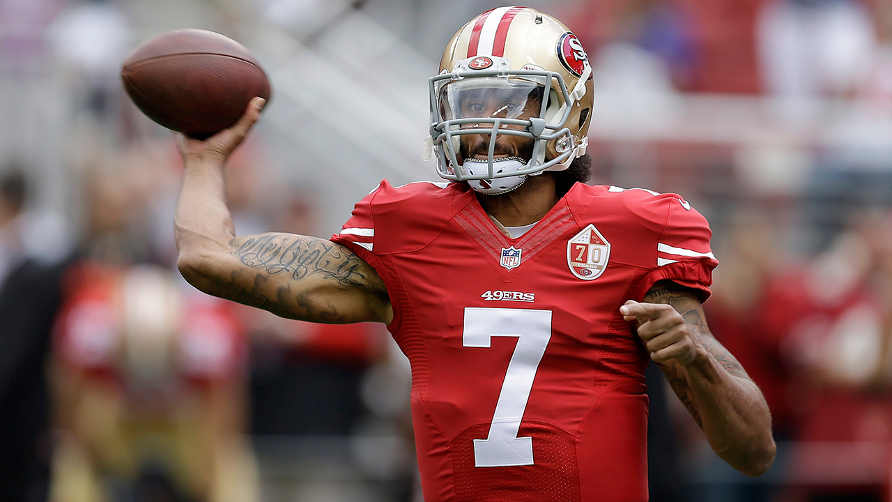 Kaepernick posted a 28-20 record as San Francisco’s starter. But the 29-year-old made headlines last year when he refused to stand for the U.S. national anthem to protest racial inequality in the United States.