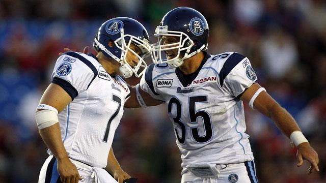 The veteran quarterback threw for 407 yards and two TDs but it was a crucial 36-yard completion to Andre Durie that set up Noel Prefontaine’s 28-yard field goal with no time left and earned the Toronto Argonauts a thrilling 39-36 home-opening win over the Calgary Stampeders.