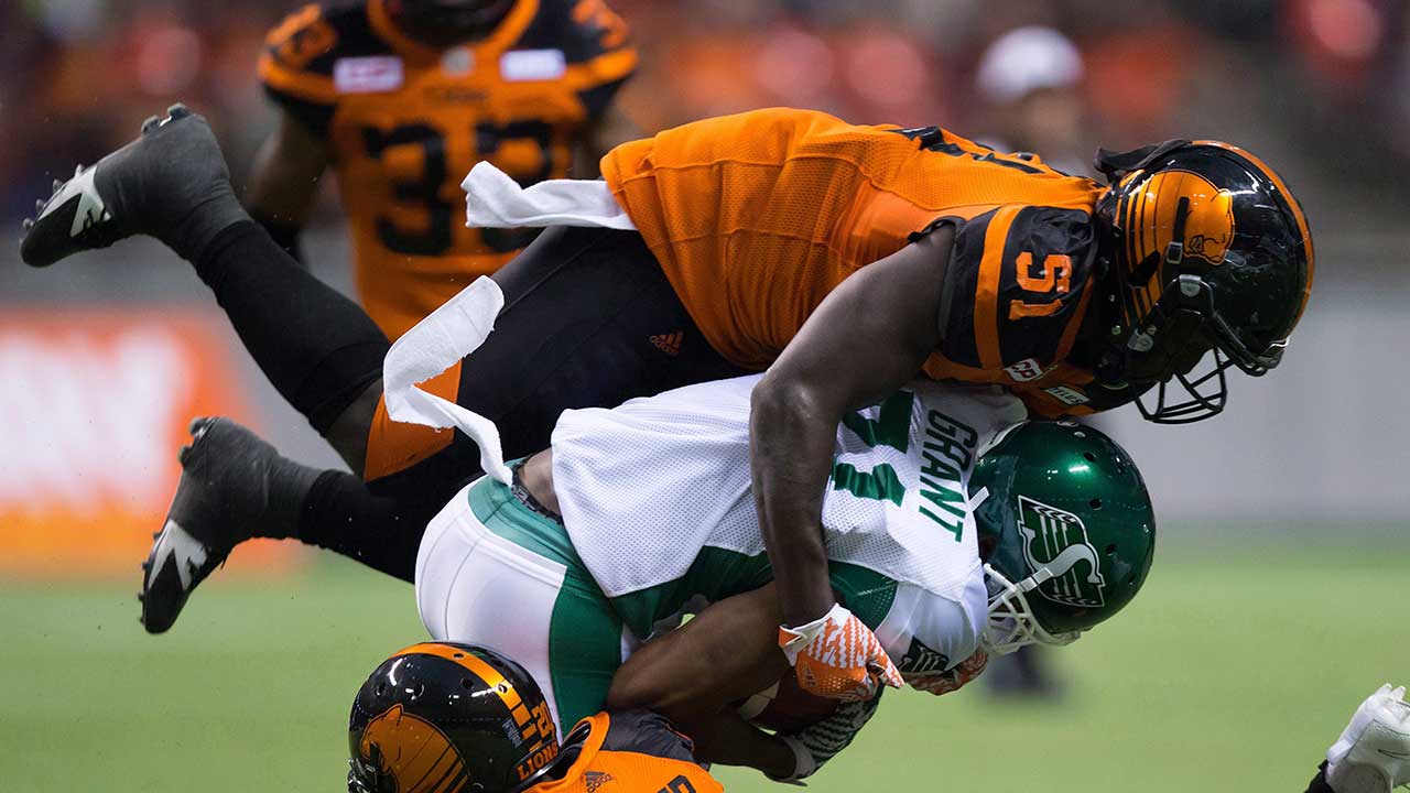 — B.C. running back Chris Rainey for grabbing the facemask of Calgary linebacker Wynton McManis in a reckless and unsafe manner.