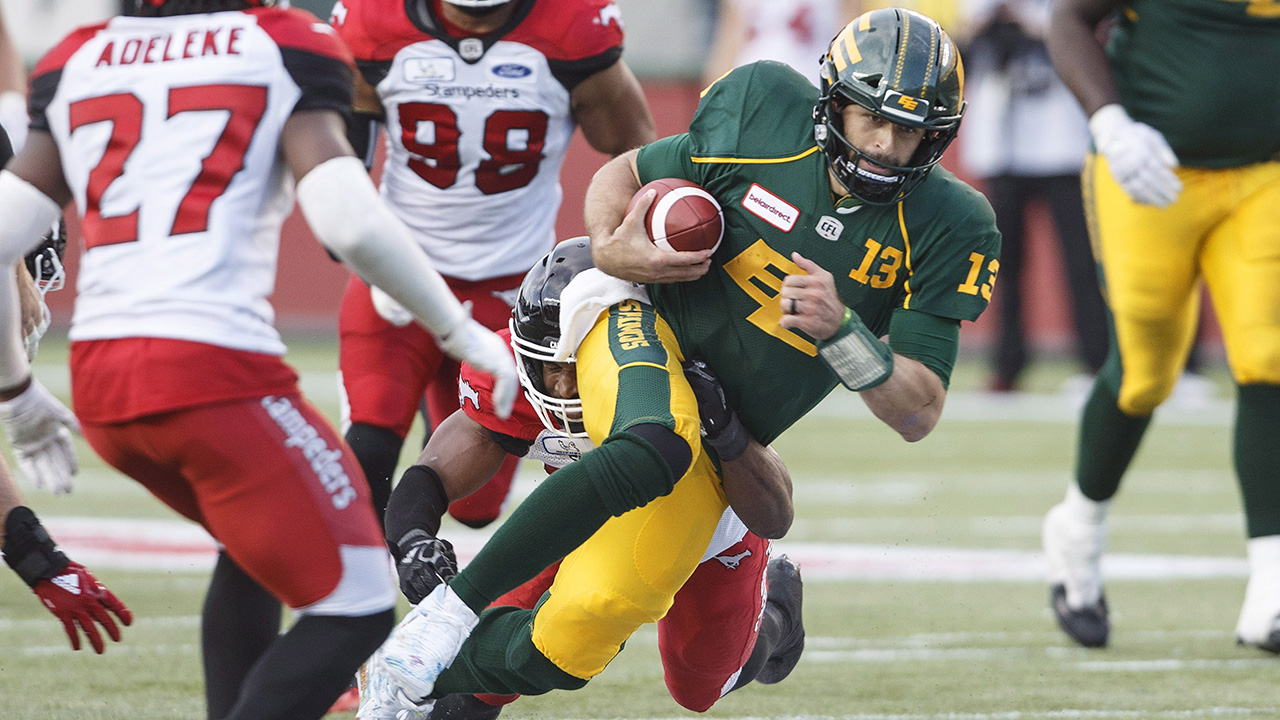 Reilly passed for three touchdowns and rushed for three more in a 48-42 win over the league-leading Calgary Stampeders on Saturday.