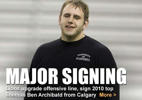 Wally Buono, the Lion’s coach and general manager, said the six-foot-four, 322-pound Archibald fills a big hole on B.C.’s offensive line.