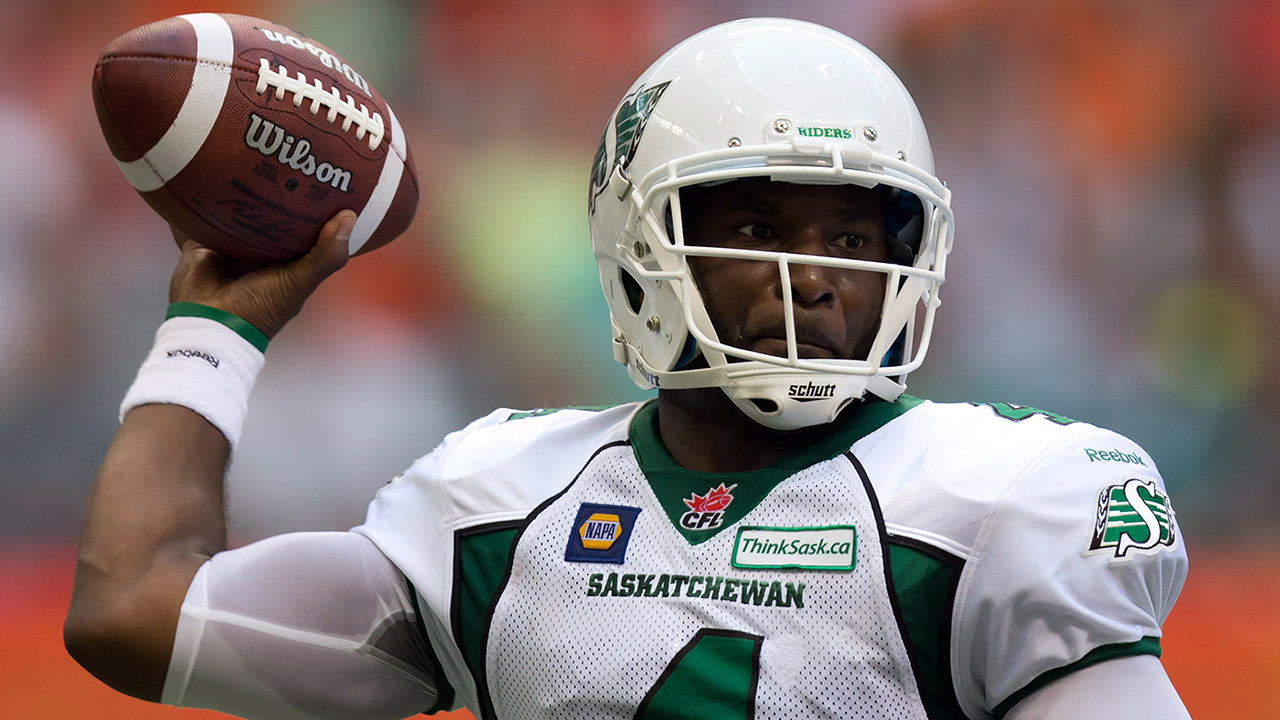 Durant left the game after completing nine of 15 passes for 104 yards in the first half, after which the Riders trailed 13-9. The starting quarterback watched the rest of the game in uniform from the sidelines while sporting a brace on his right throwing hand.