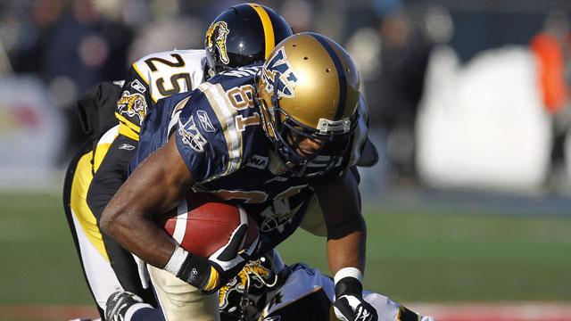 He recorded at total of 10 receptions for 99 yards, including nine for 89 in the Labour Day Classic in Regina.
