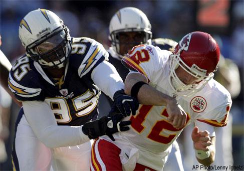 After getting outmuscled in a 28-13 loss to Oakland last Sunday, the Chargers were handed two gifts. The first was hearing that Cassel had undergone an emergency appendectomy and that they’d likely be facing backup Brodie Croyle.