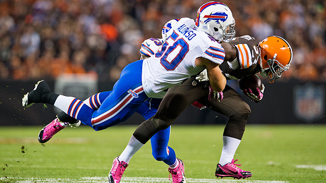 Due to the uncertainty of second-year quarterback EJ Manuel, the Bills need their defence to carry the load. They’re a run-based offence that is built to play close games. Playing without Alonso makes that significantly tougher and the club is already without last year’s best defensive back, Jairus Byrd, who departed as a free agent. The defensive line, which was already the strength of the unit, will have to carry even more of the load for the defence.