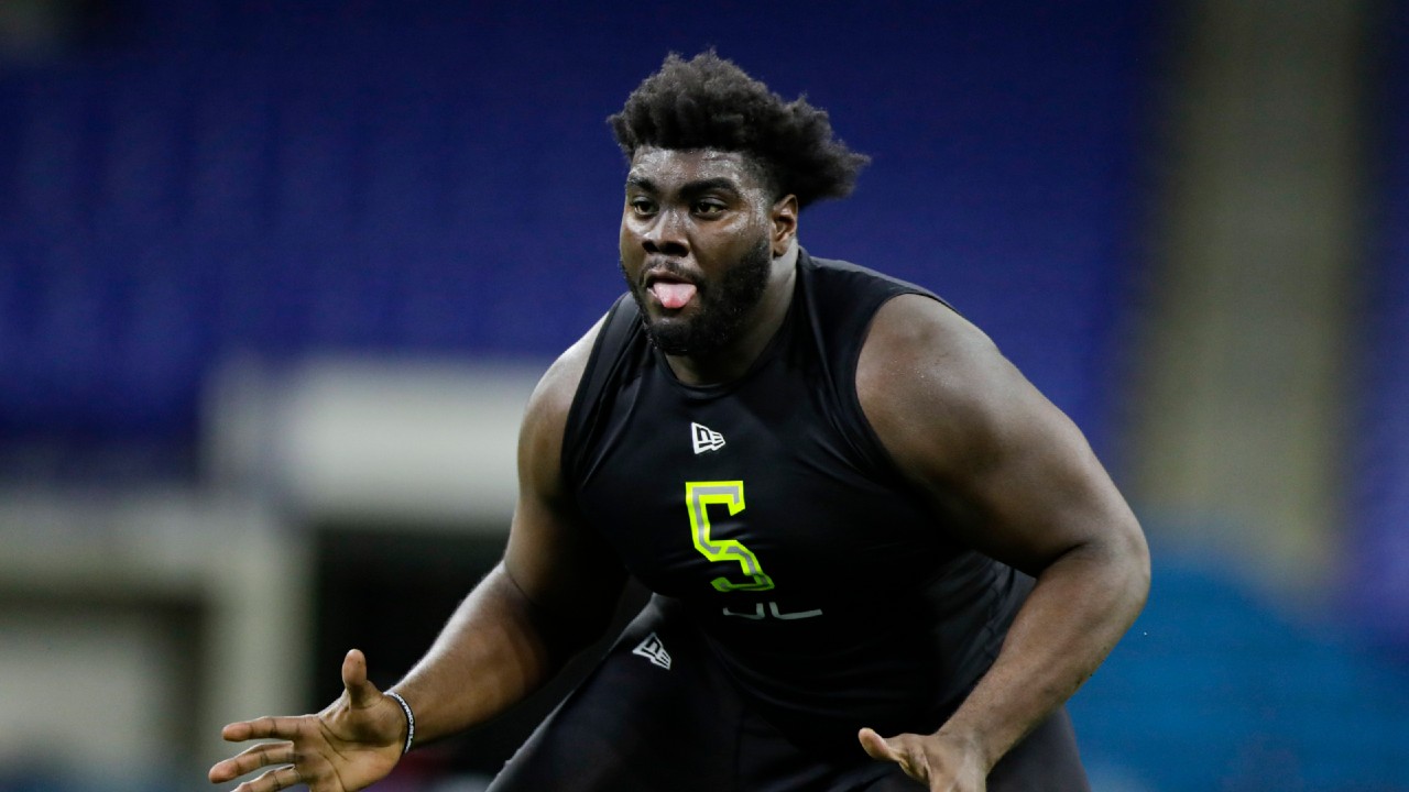 The massive offensive tackle is 6-foot-7, 365 pounds and has impressive speed for a man his size — he ran a 5.12 40-yard dash at the combine in February. He has a 7-foot wingspan and played both tackle spots for the Cardinals during his college career.