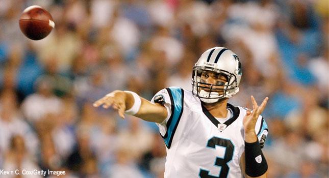 Carolina quickly signed him and he was expected to watch and learn behind Delhomme and backup David Carr. Only then Delhomme was lost to a season-ending elbow injury and Carr struggled, then got hurt. Aging verteran Vinny Testaverde was signed, but he got hurt, too.