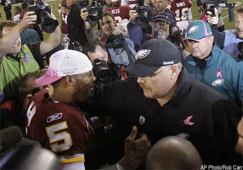 Most importantly, McNabb was at ease during what could have been a disquieting day. His numbers — a career-low eight completions for 125 yards — weren’t great. The final score was for Washington, and McNabb clinched the win with an 18-yard scramble for a first down in the final minutes.
