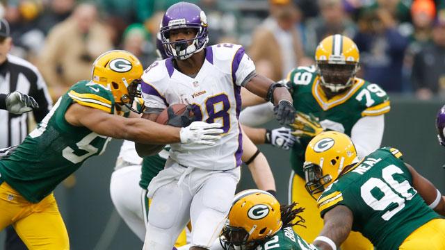 NOTES: Burnett’s two interceptions matched his single-game career high. He also had two last year against the Bears. … Peterson is the second player to gain 100 yards rushing against the Packers this year, and first since San Francisco’s Frank Gore in the season opener. … The 11-minute scoring drive was Green Bay’s longest of the season. … With 1 1/2 sacks Sunday, Jared Allen now has 14 of Rodgers. … Peterson’s 21 carries gives him 1,640 for his career, topping the previous Vikings record of 1,627. … Green Bay has won 24 of its last 26 regular-season games at home.