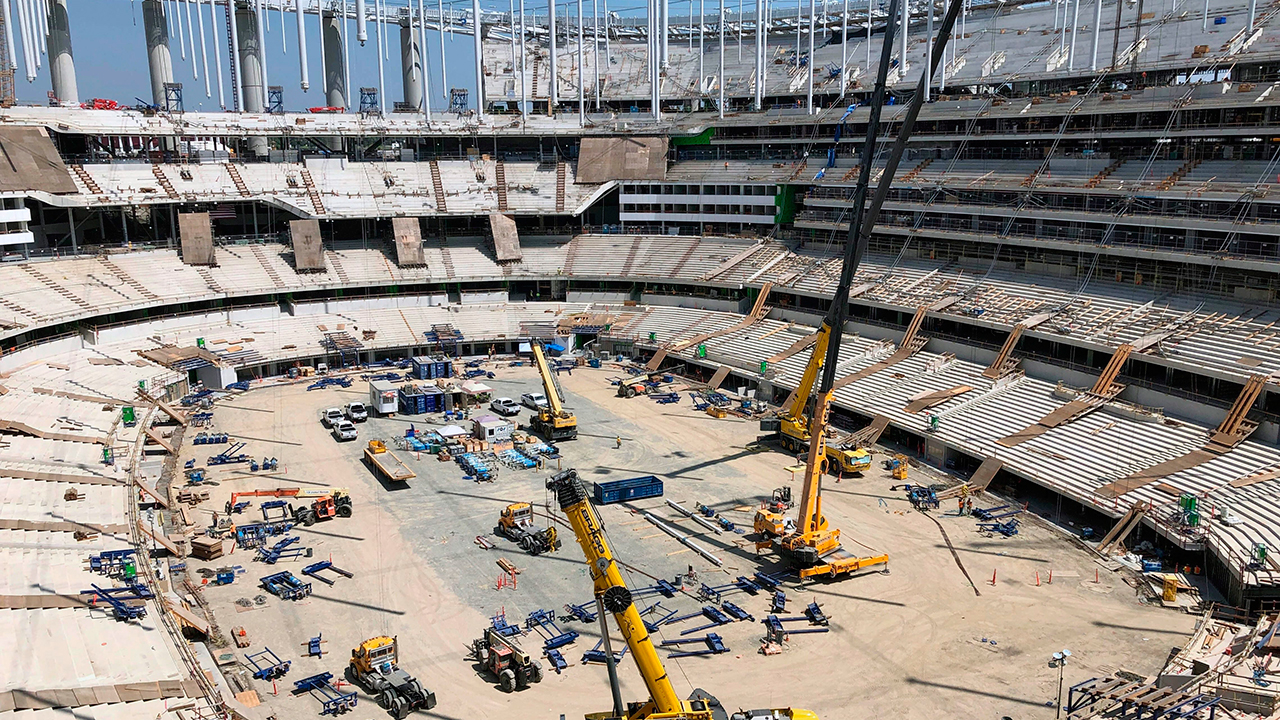 SoFi Stadium is on schedule to open next summer in Hollywood Park ahead of the 2020 season for Los Angeles’ two NFL teams. One season later, the stadium will host the Super Bowl.