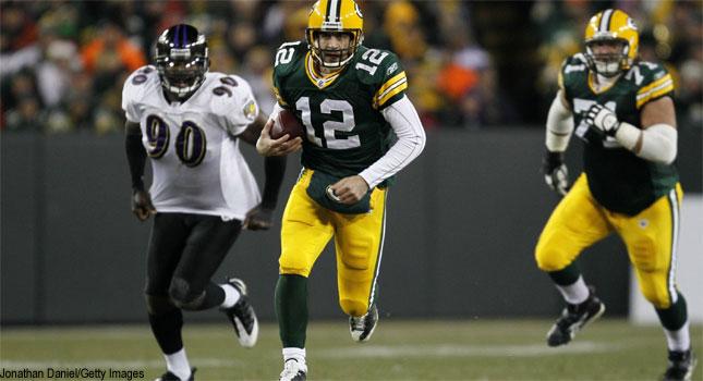 Baltimore’s Joe Flacco was 15-of-36 for 137 yards with a touchdown and three interceptions. The Packers sacked him three times.