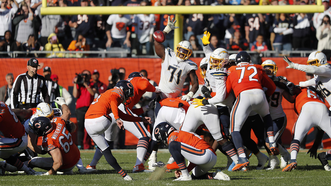 The miss allowed the Chargers (3-5) to snap a three-game losing streak and avoid their first 0-4 October since 2000, while the Bears (3-4) dropped their third in a row. Los Angeles also picked up its first victory in seven road games all-time against Chicago and its first win at Soldier Field after losing four.