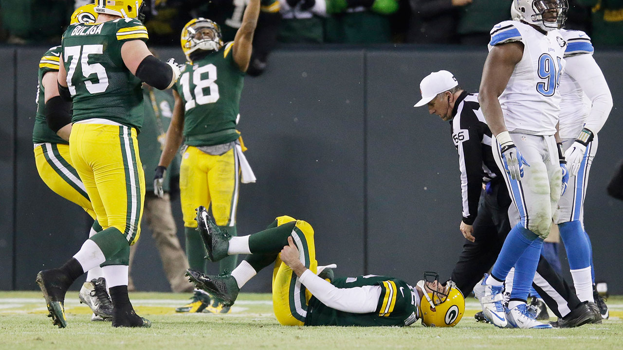 Rodgers had to be carted into the locker room with the injury in the second quarter of Sunday’s NFC North-clinching 30-20 win over Detroit. He came back in the third quarter, throwing for one touchdown and scoring on a quarterback sneak from the 1.