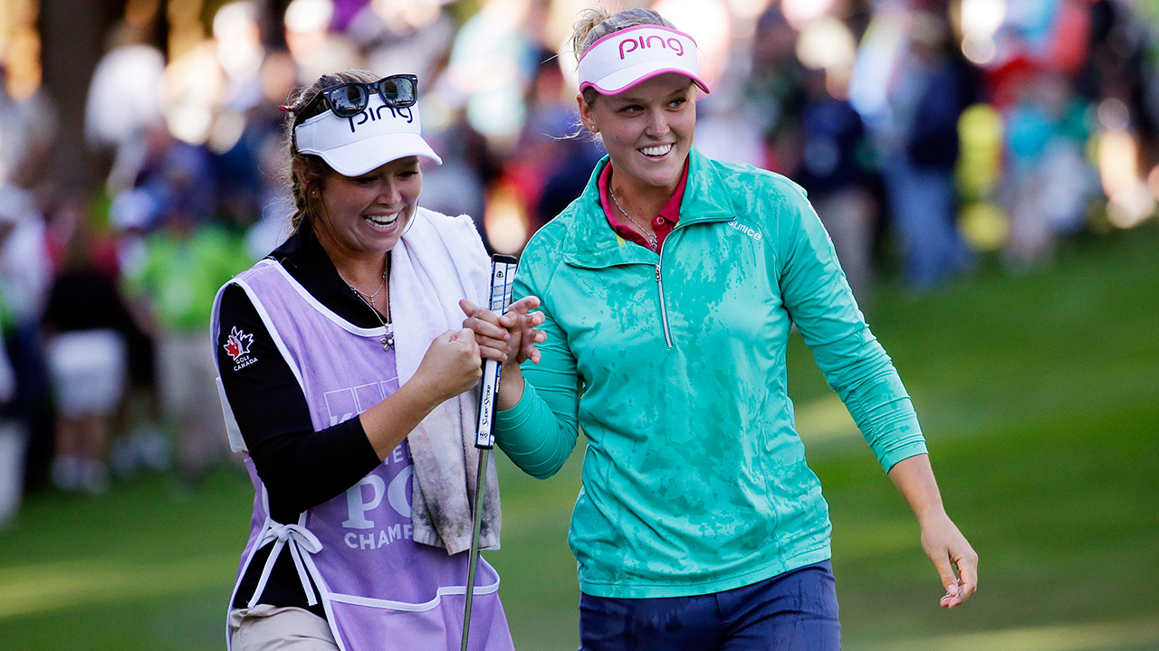 Brooke Henderson with her sister and caddy Brittany Henderson. (Elaine Thompson/AP)