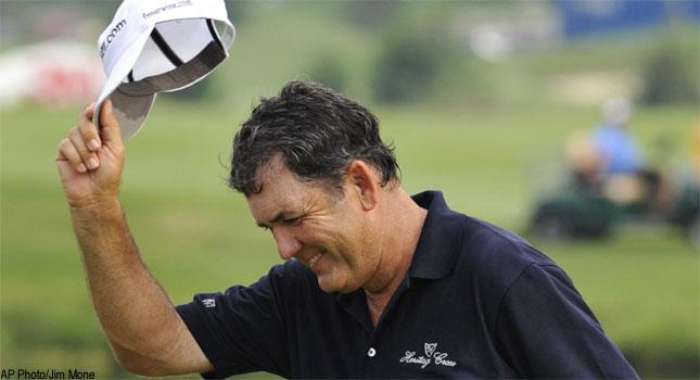 Jeff Sluman (67) and Kirk Hanefeld (68) tied for sixth, nine shots back, one better that Olin Browne (65) and John Cook (69).