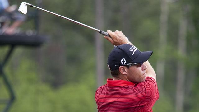 A thunderstorm dumped 1 1/4 inches of rain Thursday, causing the backup. The players enjoyed sunny and calm conditions Friday, but the fairways were damp, and players were permitted to lift, clean and place.