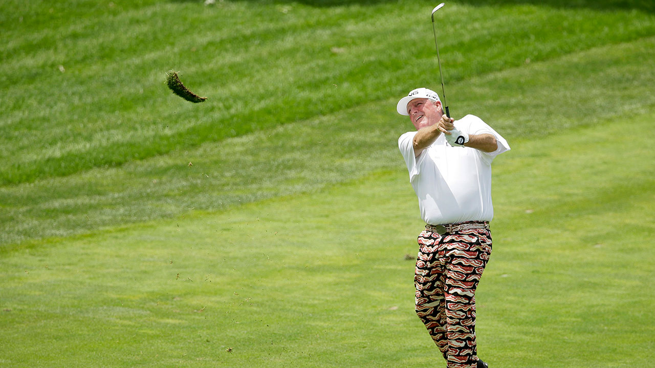 DES MOINES, Iowa — Wearing bacon-themed pants and using a putter he bought from an Iowa sporting goods store, Mark Calcavecchia broke through for one of his most satisfying wins.