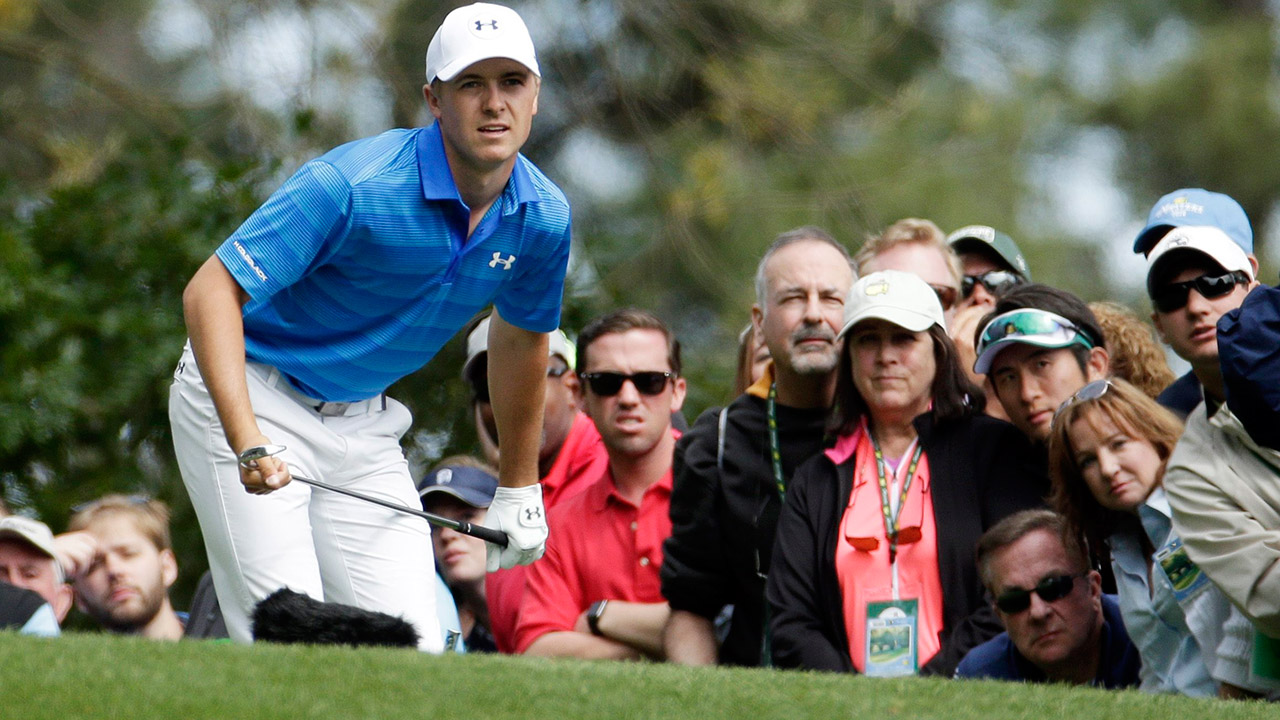 Jordan Spieth watches his tee shot on the fourth hole. (Charlie Riedel/AP)