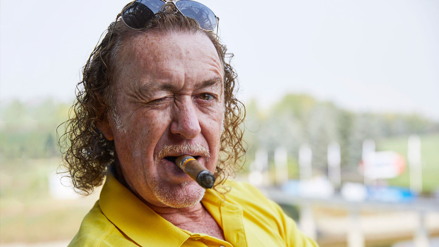 On this sunny day in Calgary, that same guy’s signature curly ponytail, with tinges of blonde and brown and red and grey, sticks out behind a visor. His golf shirt is a shade of yellow so bright it’s visible from a mile away, and he’ll soon replace his loafers with spikes for morning practice. “I’m lovely,” Jimenez says, brushing a large chunk of ash off his pants — he likes to avoid ashing his cigar as long as he can, consequences be damned. “When I look in the mirror, I love what I see here. I’m 20, 21, 22, 21 — same guy.” He waves his free hand up toward his face, “Handsome, beautiful, nice, funny,” he says. “Everything.”