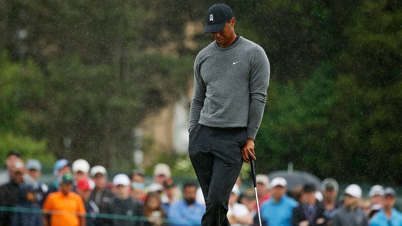 Starting the second round on No. 10, Woods made the turn at even par and came back around to No. 1. His drive was fine, but he yanked his approach shot to the right of the green into deep rough, and then rolled his third shot over it. After pitching to about 14 feet, he missed a bogey putt.
