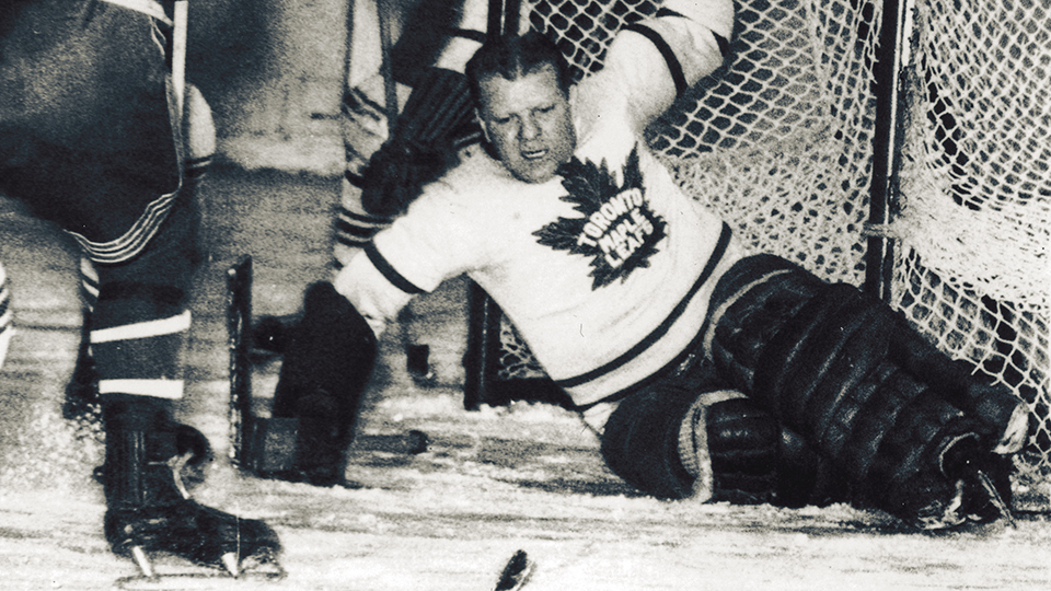 Broda impressed enough to stay, starting out with the Olympics of the International Hockey League. That’s where Conn Smythe saw him in 1936 and promptly paid Detroit $7,500 to acquire him. Hockey observers thought Detroit had ripped off Toronto in a big way. Smythe disagreed. “Broda could tend goal in a tornado and never blink an eye,” he said. “And you can blame any carelessness on youth. He’ll outgrow that in a hurry.” He did, quickly establishing himself as one of the NHL’s best netminders and winning the Vezina Trophy in 1940–41.
