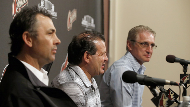 “This is kind of fun,” Eruzione said at Jobing.com Arena. “It’s great for us to get together because we have a bond and a friendship and a love that we’ll always have for each other. It’s just hard to get 20 guys together, but when we do, it’s fun. We’re like little kids, we’re very immature.”