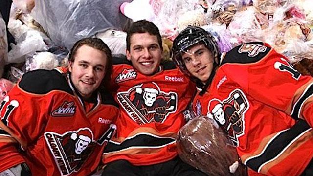The Calgary Hitmen held its 18th annual Petro-Canada Teddy Bear Toss on Sunday in a 4-1 win over the Kootenay Ice.