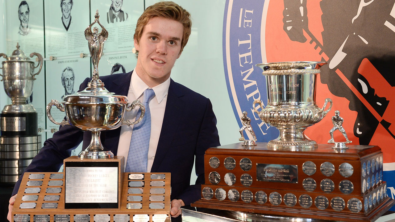 Connor McDavid continued to add to his recent accolades on Tuesday at the Ontario Hockey League awards ceremony, winning the league’s most outstanding player and scholastic player of the year.
