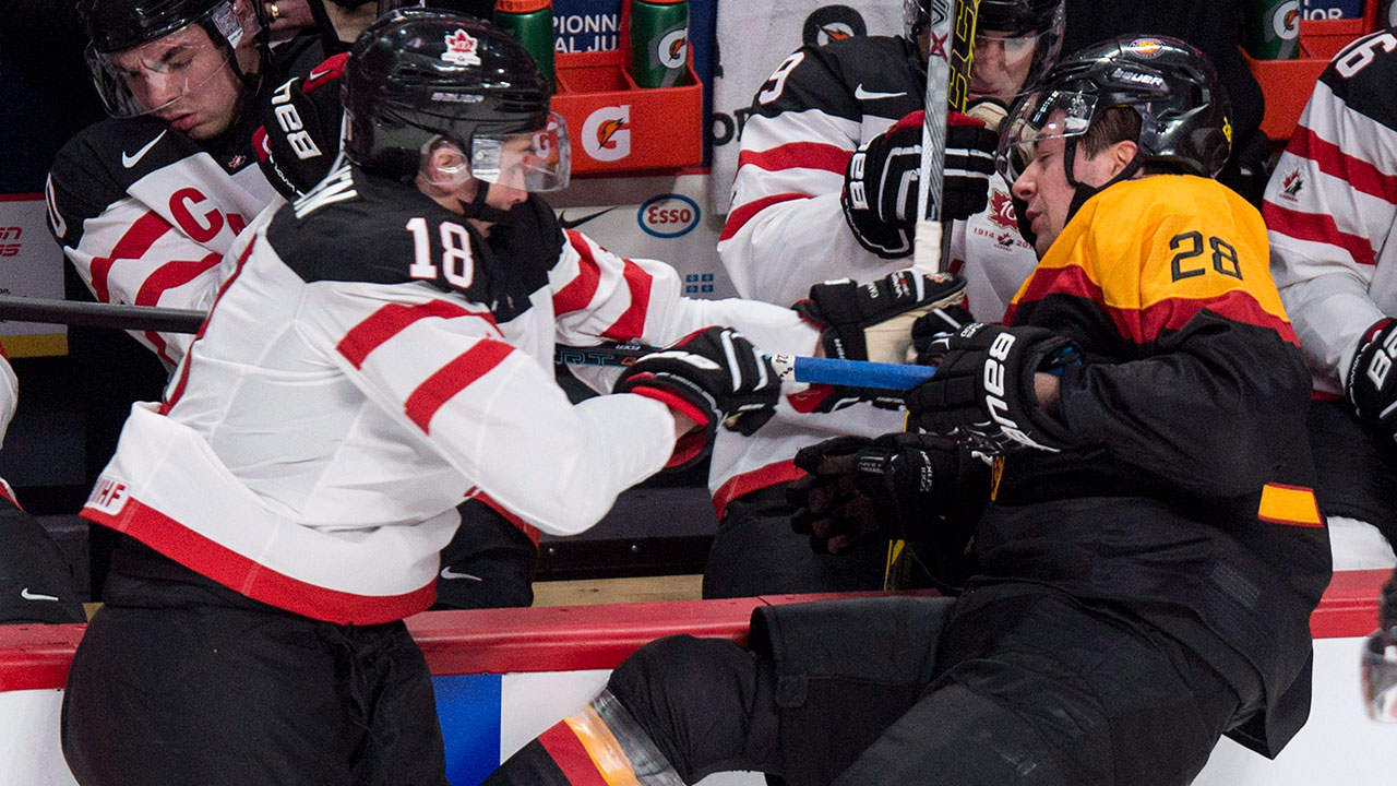 Still, the Germans played semi-spoiler, losing 4-0 to Canada, a nation it has never beaten in this tournament. The Germans gave up but one even-strength goal, Max Domi notching it in the third period.