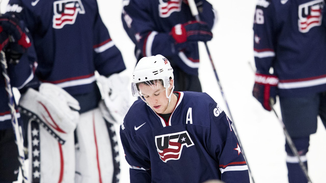 New Jersey Devils farmhand Stefan Matteau, Plymouth Whalers forward Ryan Hartman and Wisconsin’s Nic Kerdiles had first-period goals for the United States, the tournament winner last year in Russia.
