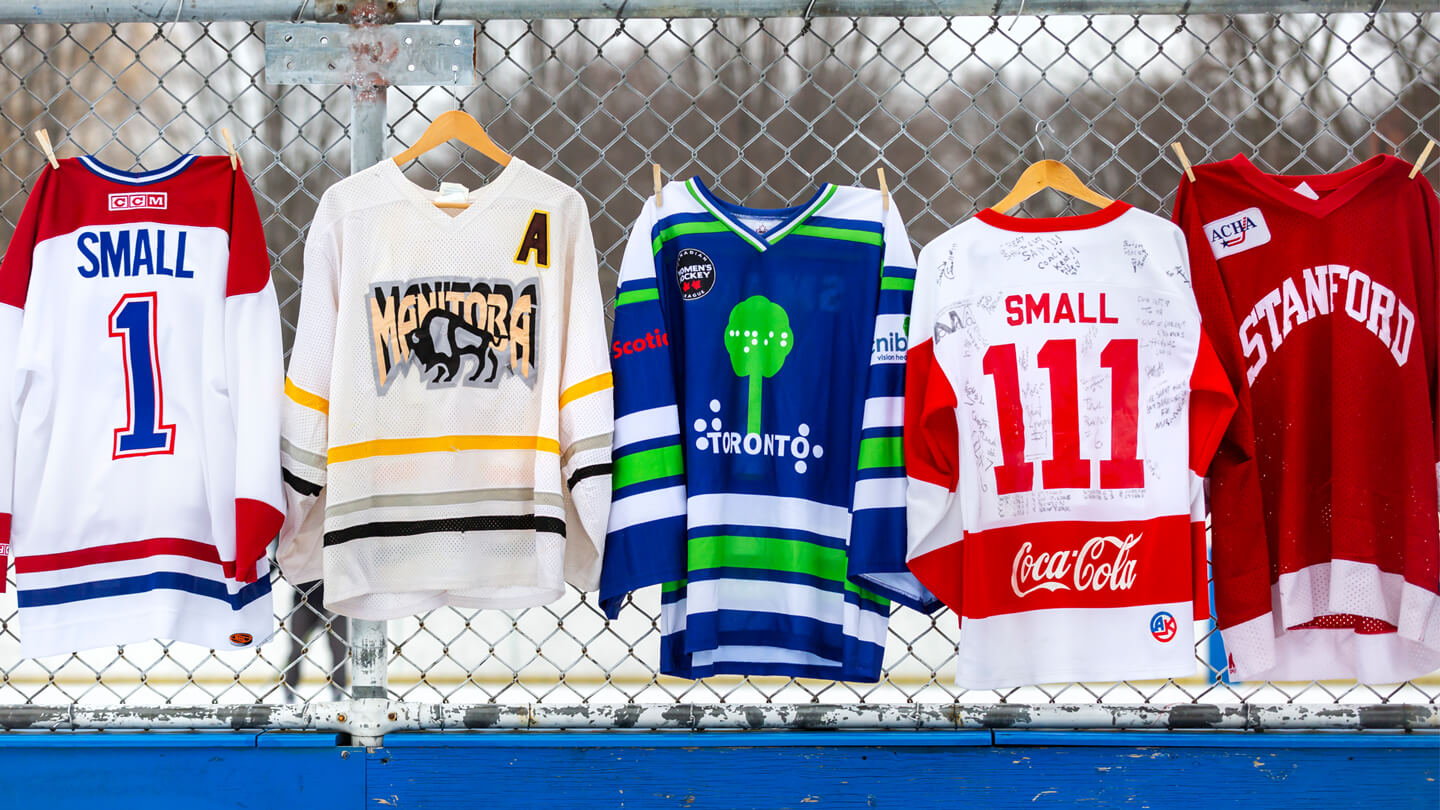 As soon as Sami Jo Small sits down on a bench wearing a blue jersey with that logo plastered on the front, the 10-or-so of us already at Toronto’s Rennie Park Rink for our weekly outdoor shinny game immediately start peppering her with questions. Mostly: “Where did you get that one?”