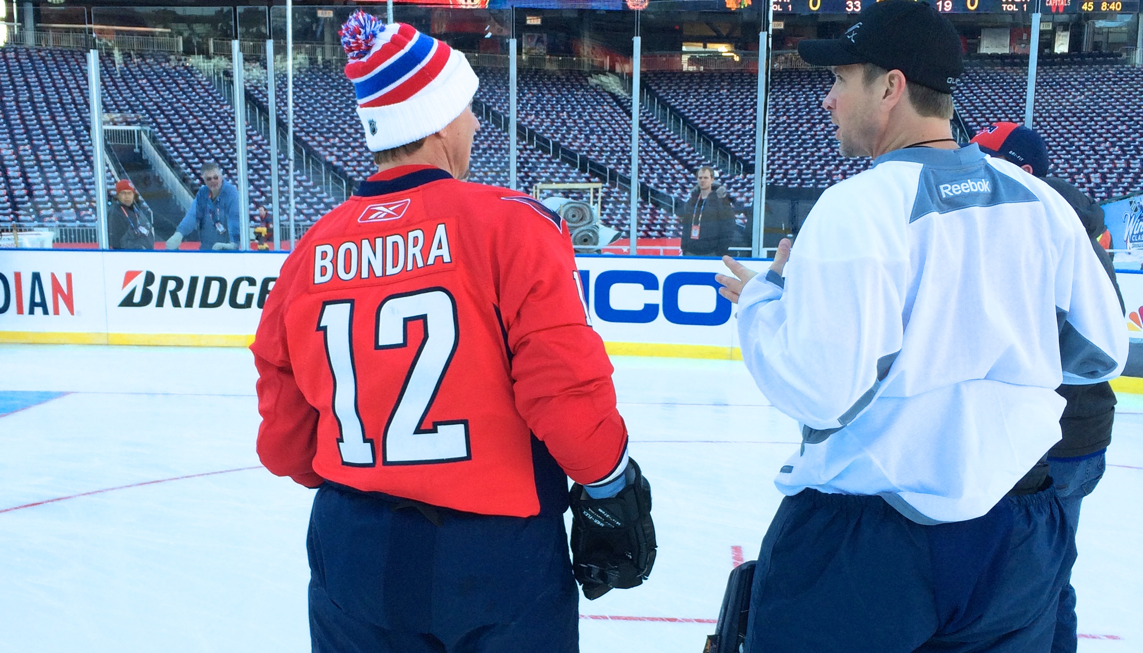Capitals forward Brooks Laich drops by early to film the rink.