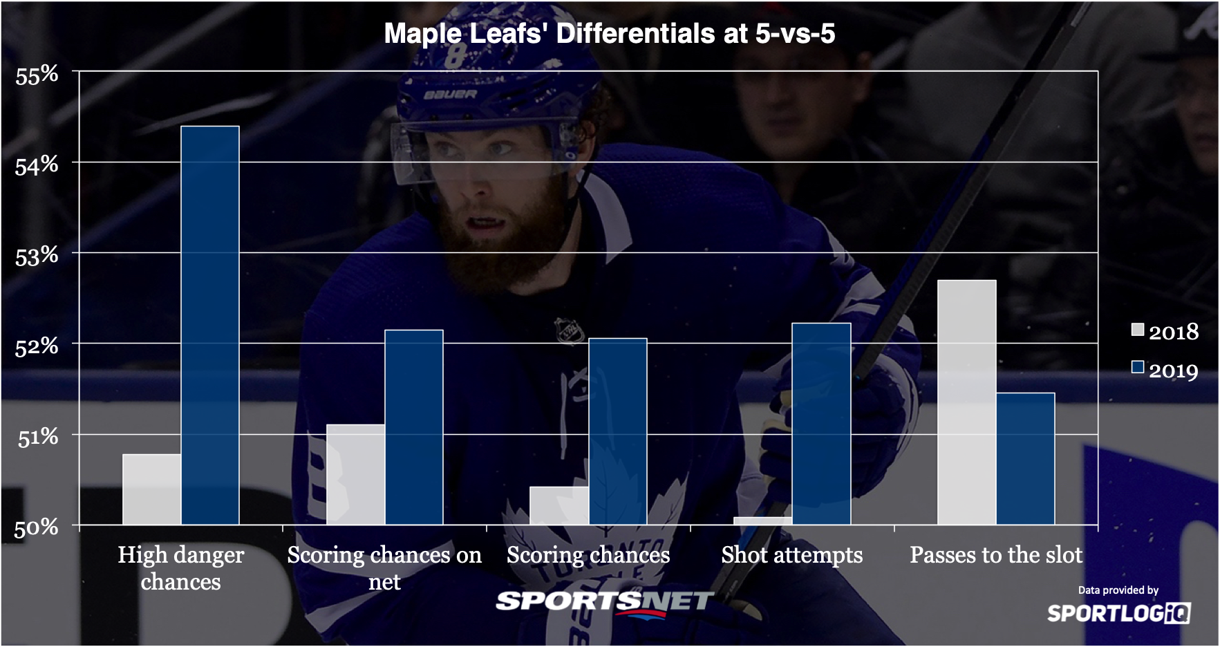 The passing dominance the Leafs have exhibited for a few seasons did take a hit, but adding Jake Muzzin and getting William Nylander’s legs under him after a late start really helped Toronto’s ability to create its own high danger chances and limit opponents’.