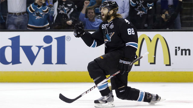 Joe Pavelski gave Burns the puck and then screened off Halak. Burns skated between two defenders and shot.