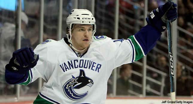 The 22-year-old rookie forward scored three goals for Vancouver in a 5-4 shootout win over the Anaheim Ducks on Friday that secured a playoff berth for the Canucks.