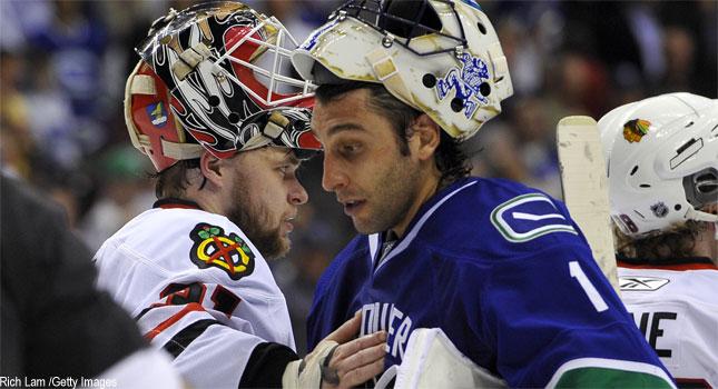 The victory came one year to the day after Chicago beat Vancouver 7-5 in Game 6 to win the 2009 Western Conference semifinal.