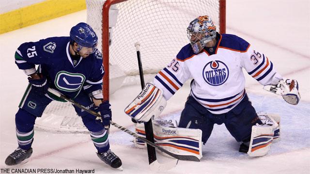 Daniel Sedin gave the Canucks a 1-0 lead midway through the first period, picking up a pass from twin brother Henrik behind the net and forcing a wraparound into the net.