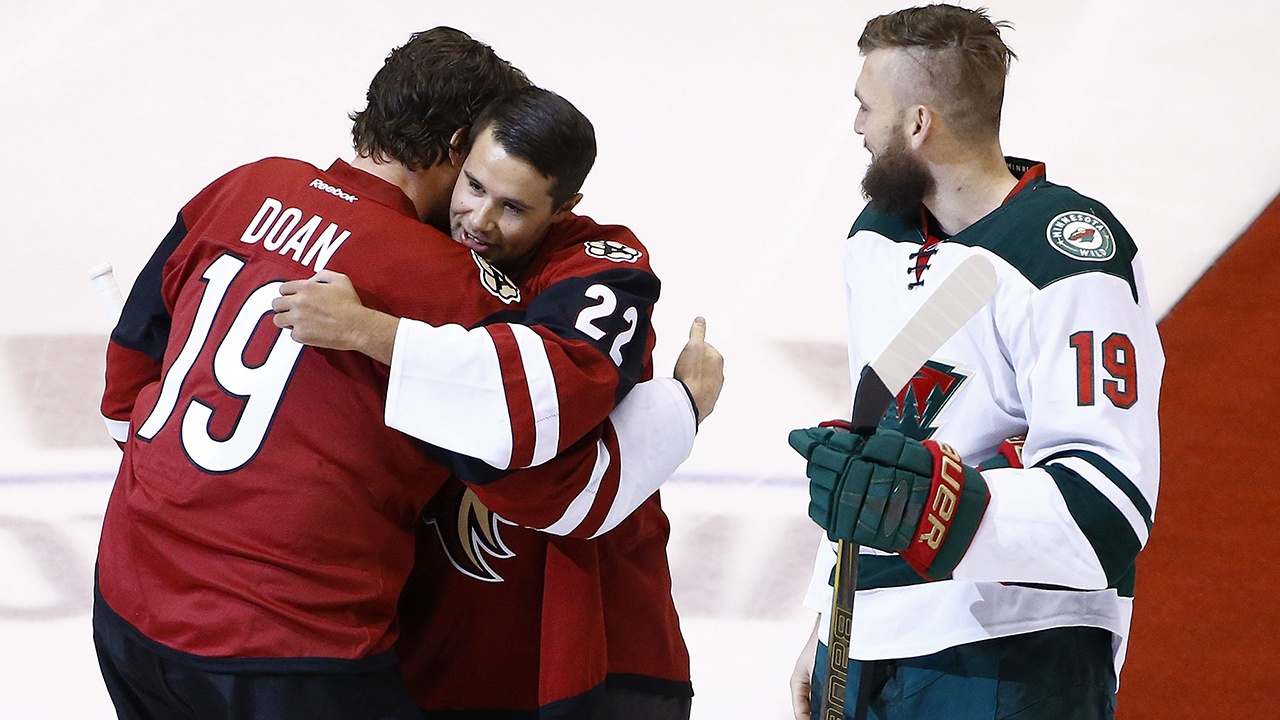 He did just fine, receiving a loud ovation as he walked out to centre ice to drop the puck in front of Coyotes captain Shane Doan.