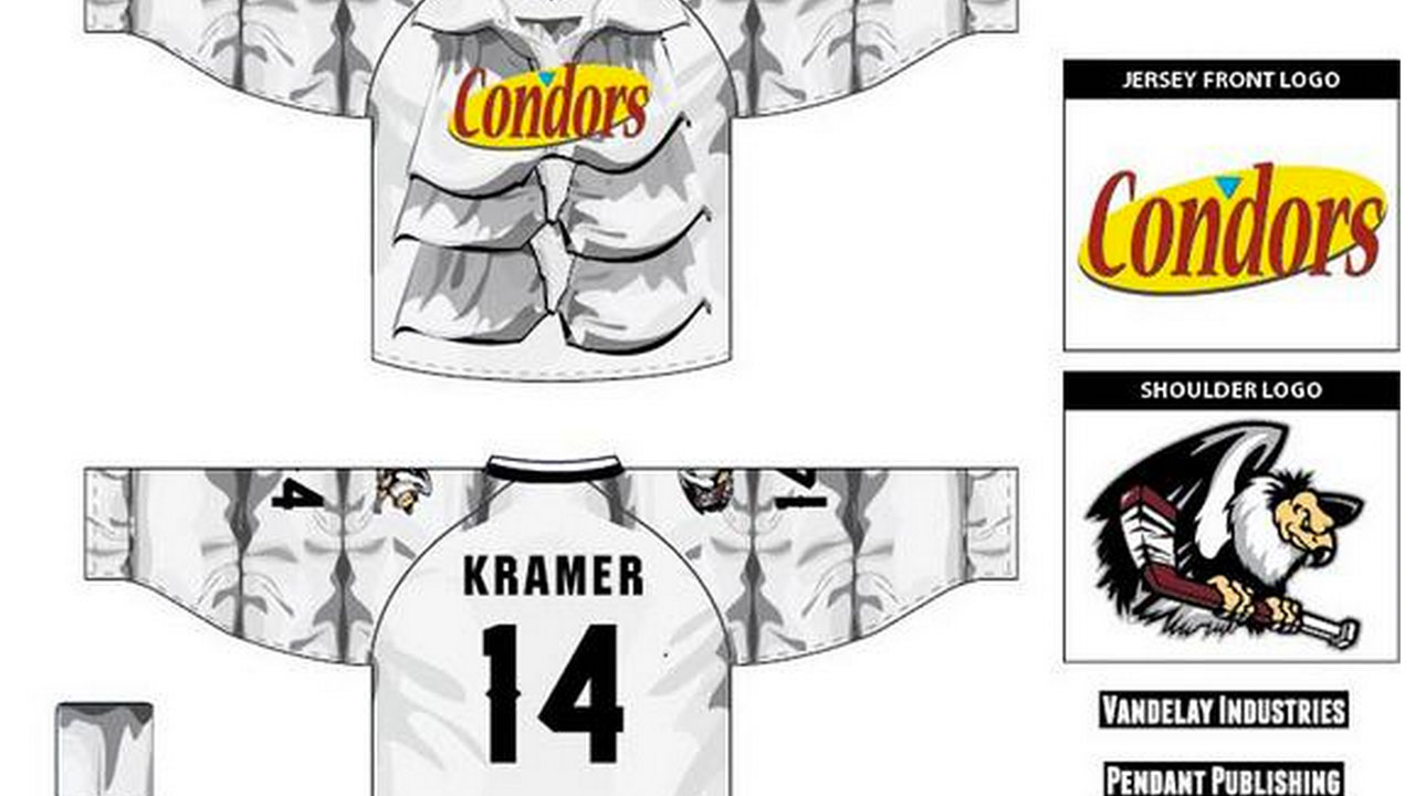 The ECHL’s Bakersfield Condors, an affiliate of the Edmonton Oilers, had one heck of a fun night on Saturday. The team hosted a Seinfeld-inspired “Puffy Shirt” night, in honour of the 25th anniversary of the beginning of the sitcom. Team members wore jerseys reminiscent of the pirate ensemble Jerry was once tricked into wearing on live TV by the low-talker.