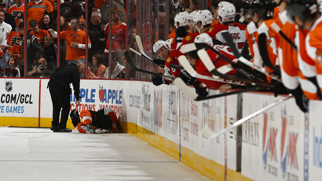 The hit occurred midway through the third period of a 2-1 Flyers victory in the team’s first game since firing head coach Peter Laviolette.