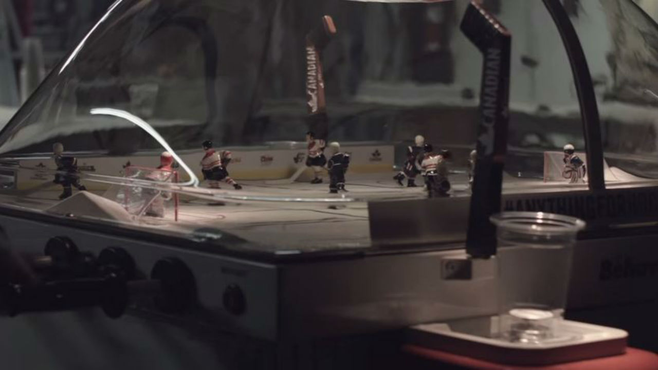 The group that brought us the Toronto Maple Leafs’ deodorant zamboni have crafted a bubble hockey table that automatically pours a beer for the game’s winner.