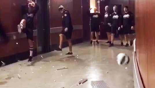 As is the case with most NHL teams, the Los Angeles Kings warm-up in the bowels of the arena before game time by kicking around a soccer ball. (We’d love to believe elite soccer players get psyched for the match by playing shinny, although we highly doubt it.)