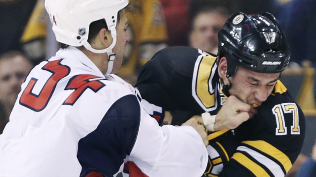 Watch above as Julien’s charge, forward Milan Lucic, goes toe-to-toe and blow-for-blow for nearly a full minute with Washington Capitals anti-cupcake Joel Rechlicz — a man with one point and 105 penalty minutes in 26 career NHL games.
