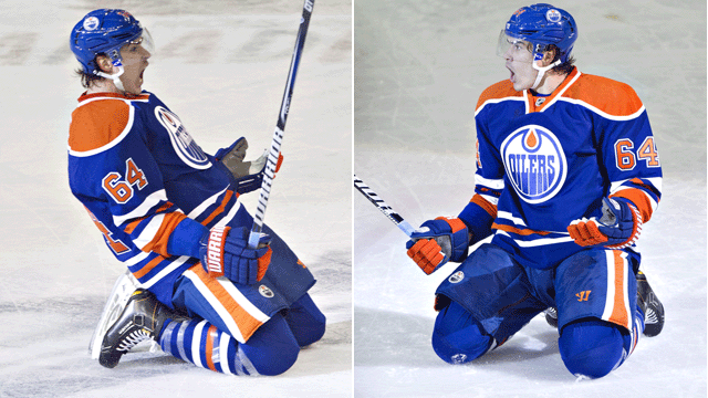 Yakupov’s “knee glee” celebration is, of course, reminiscent of a vintage celly from another young Alberta hockey hero: