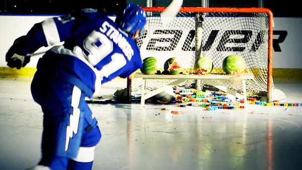 Fun stuff in this Bauer campaign for the equipment brand’s MX3 stick. Customers don’t need to be bored with blade redesign specs or flex availabilities. We just want to see an NHL star take point-blank slap shots at birthday cakes and gumball machines and donkey pinatas.