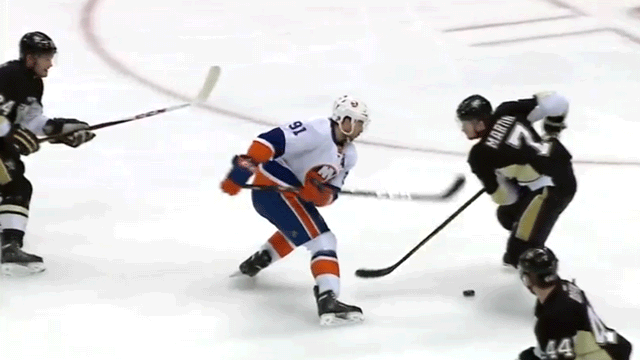 But the second-period drive to the net by Crosby’s fellow Hart Trophy nominee, John Tavares, deserves a look — even though 91 failed to beat goaltender Tomas Vokoun (as did the rest of the Islanders).