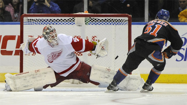 Kevin Poulin was the difference for the Islanders after he replaced the injured Evgeni Nabokov in the first period. Neither team could hold the lead until he finally shut the door in the tiebreaker, denying Henrik Zetterberg, Datsyuk and Todd Bertuzzi.